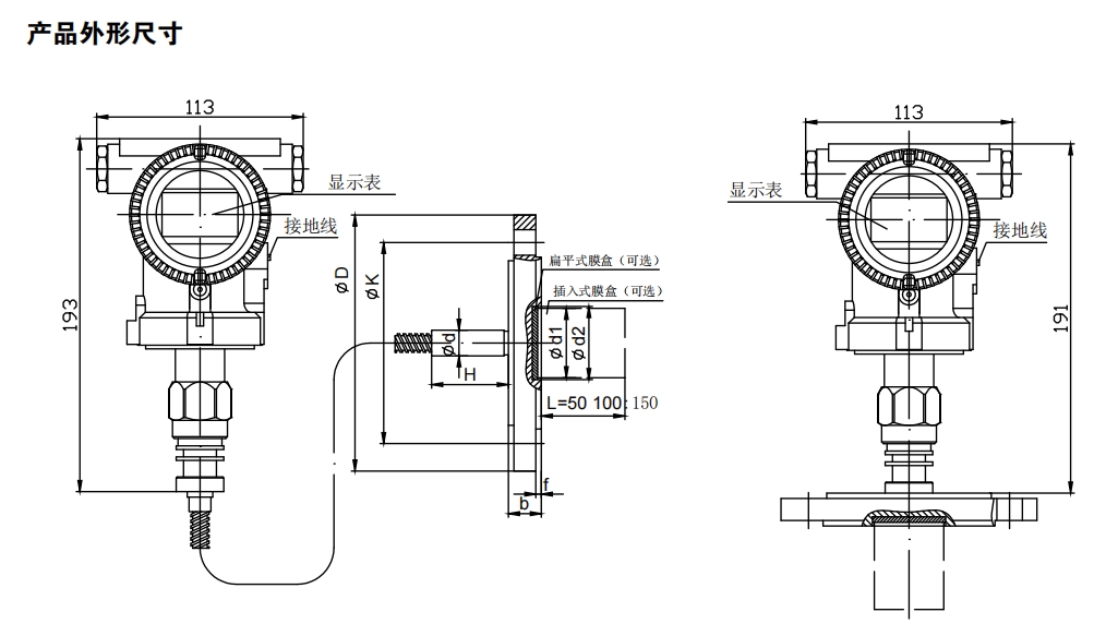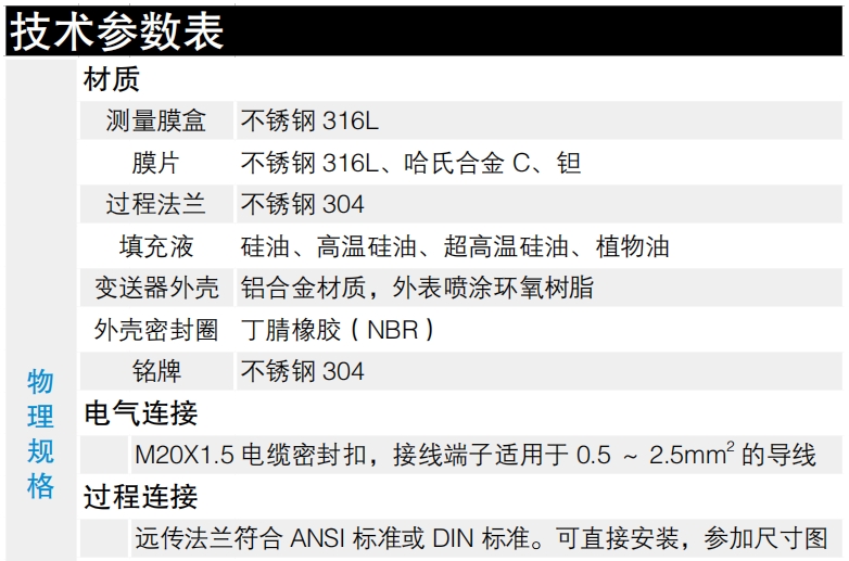HR3051S LA/LG 绝压 / 表压远传变送器在结构上,由 HR3051STG/TA 系列压力 / 绝压变送器和经焊接安装的带毛细管 远传法兰组成。作用在远传法兰侧的压力,首先经远传法兰上的 膜片和填充液,再经毛细管,最后到达测量传感器的测量端。 HR3051SLG/A 表压 / 绝压远传变送器用于测量液体、气 体或蒸汽的液位、密度、压力,然后将其转变成 4 ~ 20mADC HART 电流信号输出。 也可与手持终端 或 相互通信,通过它们进行参数设定、过程监 控等